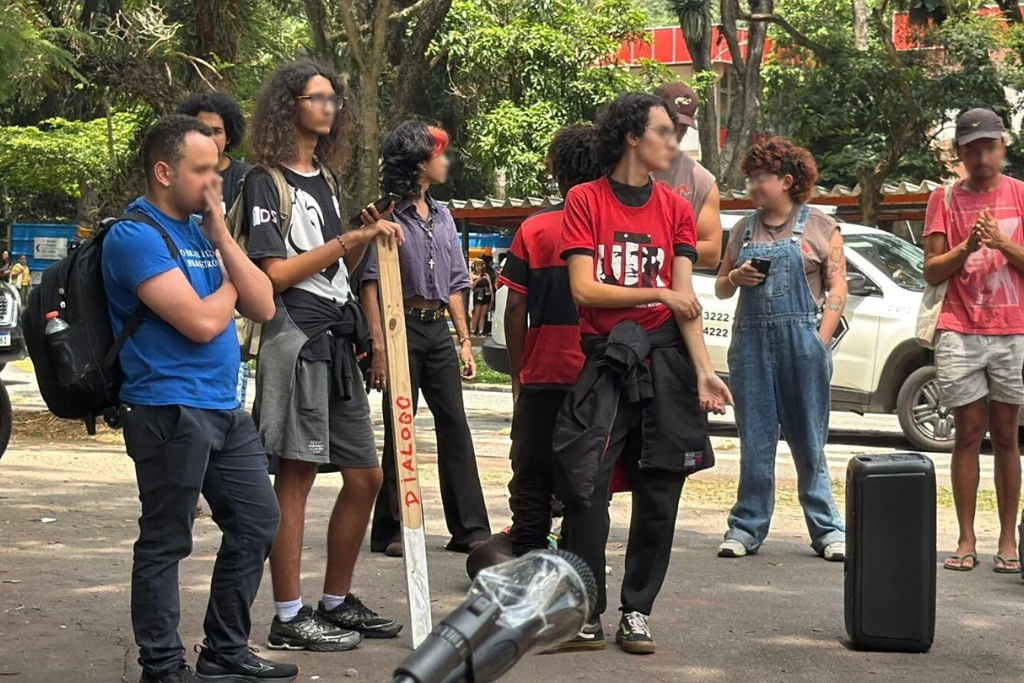 De acordo com a equipe do vereador, enquanto o primeiro participante tentava trazer seus pontos a cerca do tema, um grupo com cerca de 70 estudantes se aproximou portando uma caixa de som e aumentou o volume para impedir que o jovem fosse ouvido. Um deles carregava uma estaca de madeira com a palavra “diálogo” em vermelho.